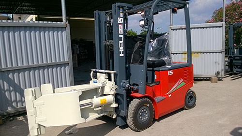 Hình ảnh mẫu xe nâng lắp bộ kẹp cuộn được sử dụng phổ biến tại VN.