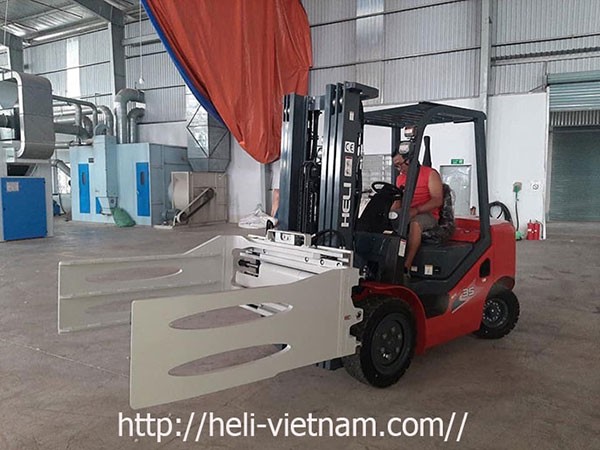Hình ảnh xe nâng Heli lắp bộ kẹp.